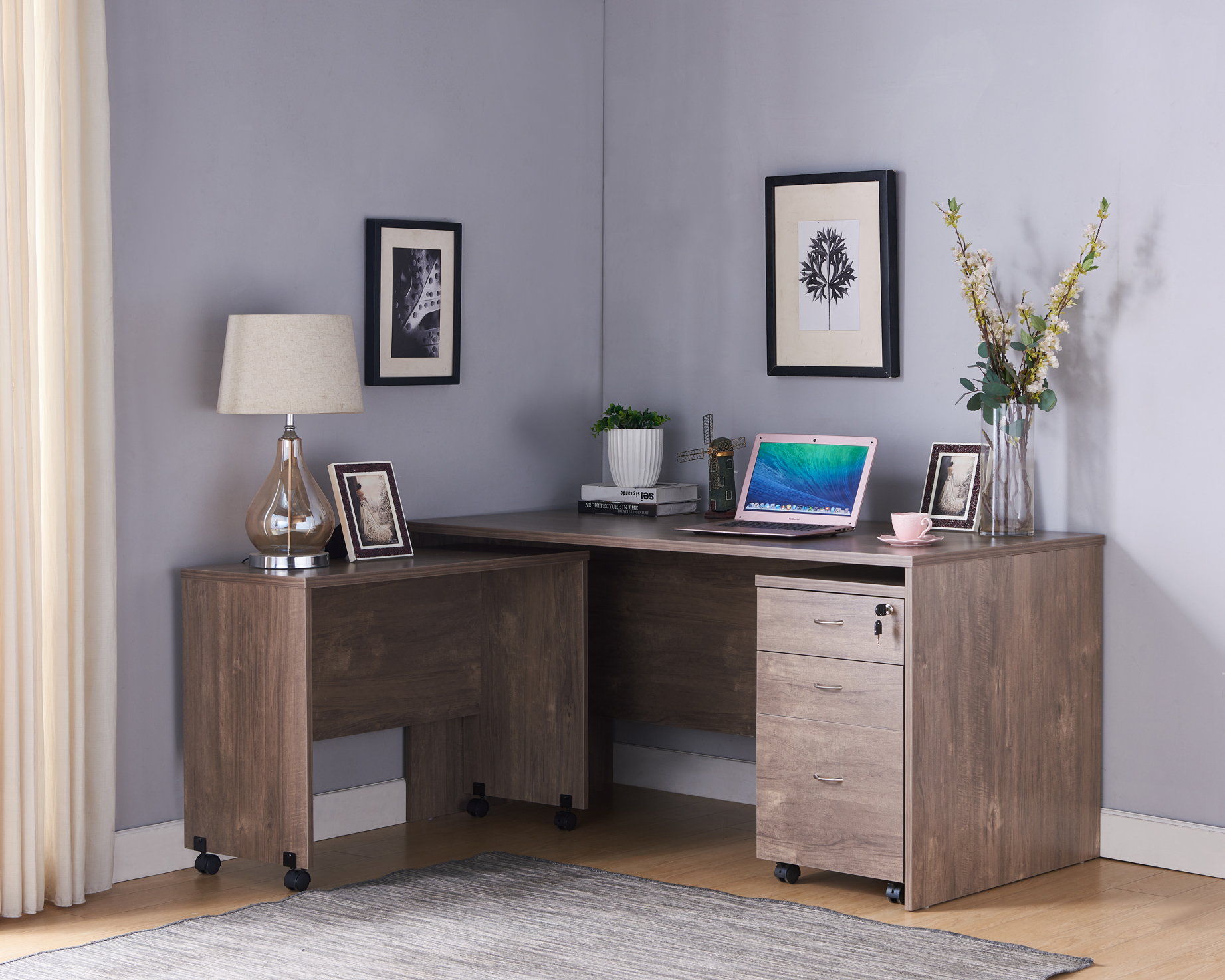 | Introducing this hazelnut mid century modern desk for your home office. Featuring a spacious desk top for your home office workspace.
