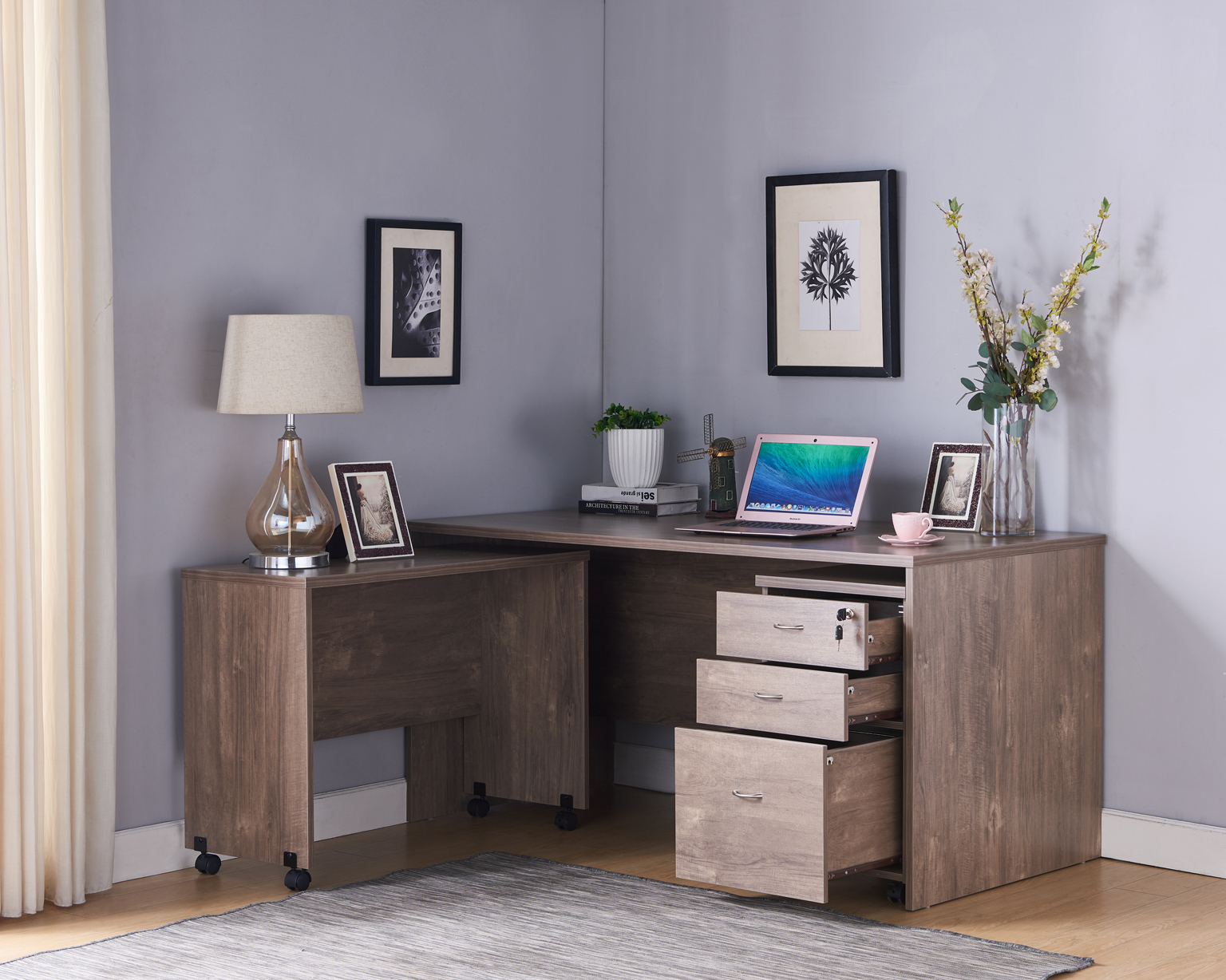 | Introducing this hazelnut mid century modern desk for your home office. Featuring a spacious desk top for your home office workspace.