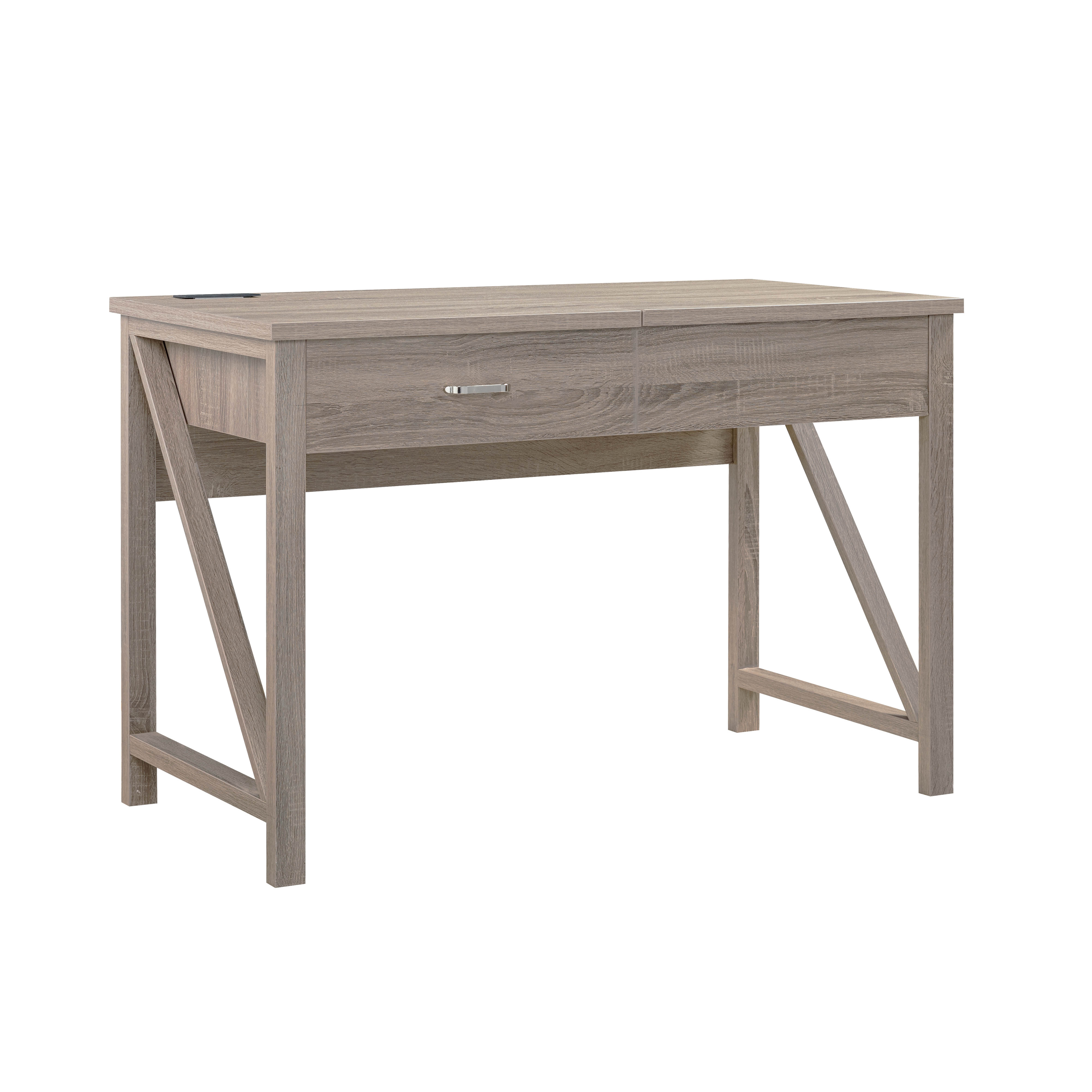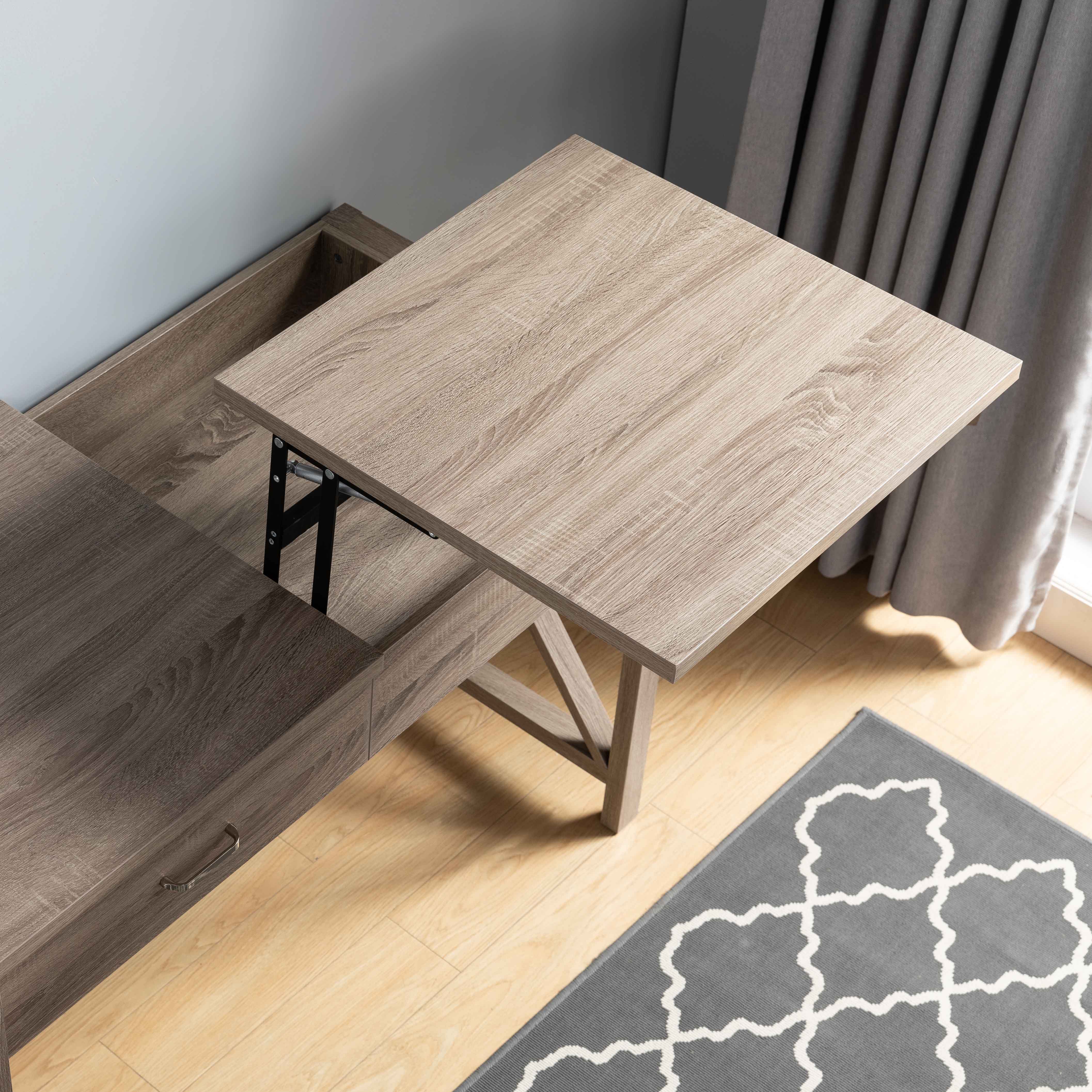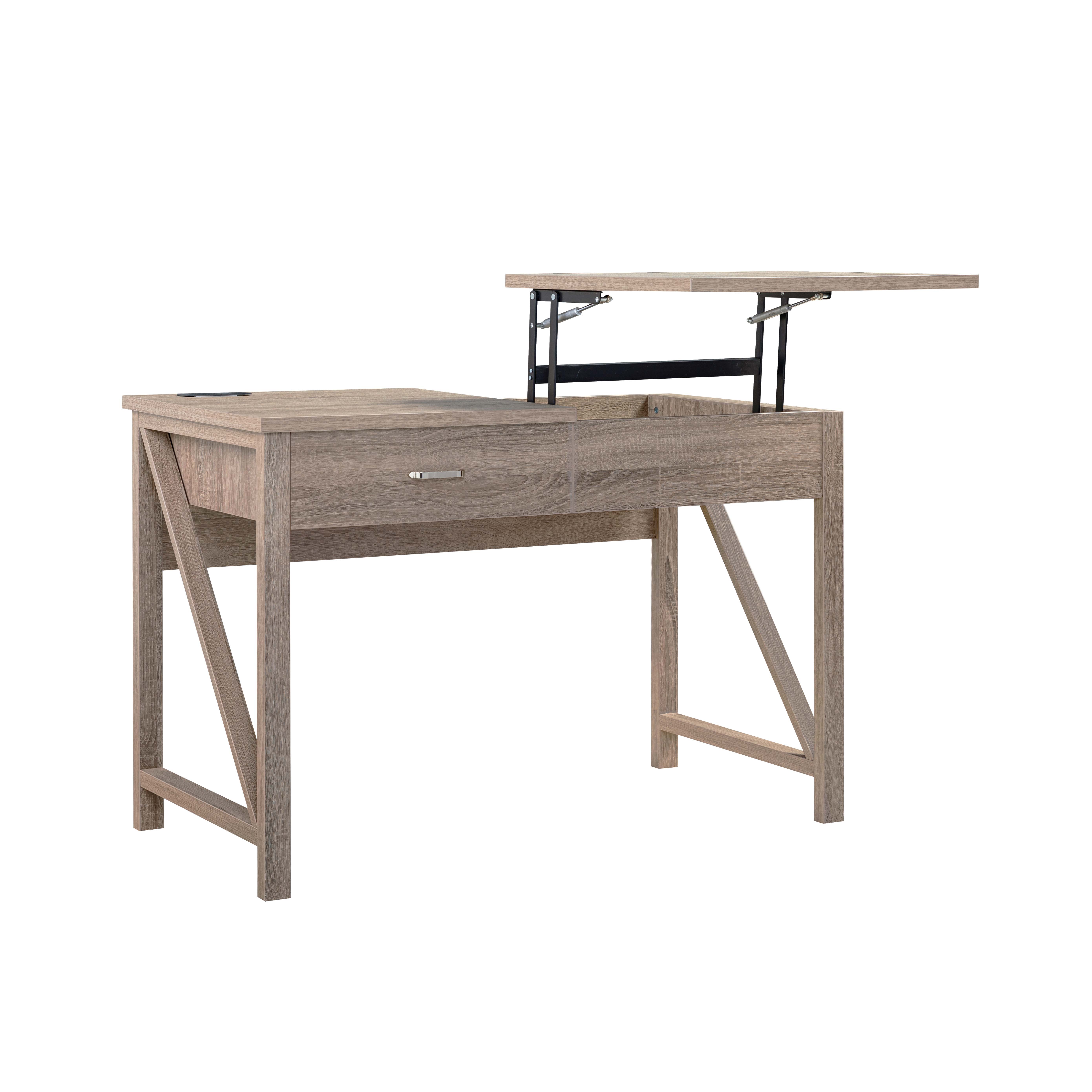 | This home office desk is a great solution for those wanting to alternate between sitting and standing during work. Featuring a half table top that lifts up to 44"H standing position, and 30"H sitting position, the hidden storage space under the table top provides organization for your stationery. The other half table top remains stationery so you don't have to clear the entire table top when raising and lowering the lift top.