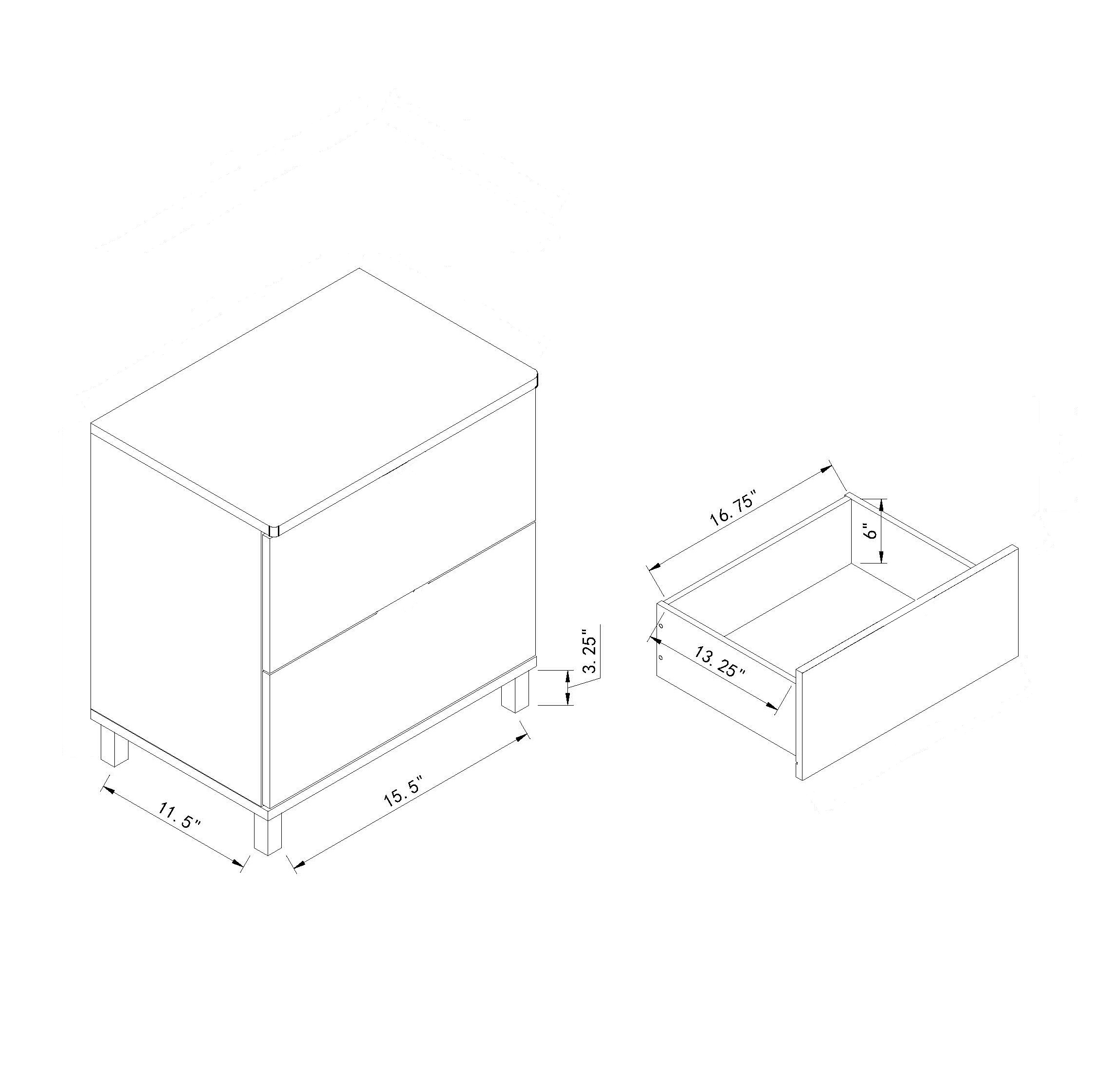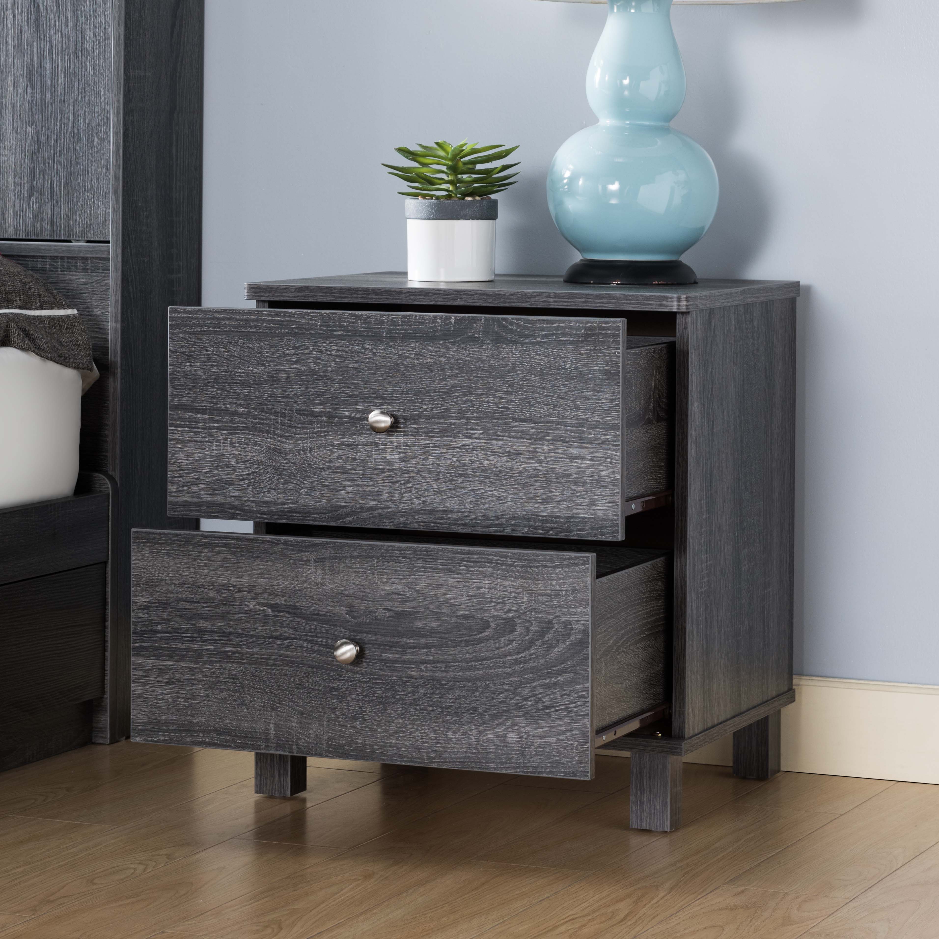 | Featuring two drawers on metal glides, this nightstand is the perfect addition to your bedroom set. The table top provides ample space for lamp and your favorite book before a good night's sleep.